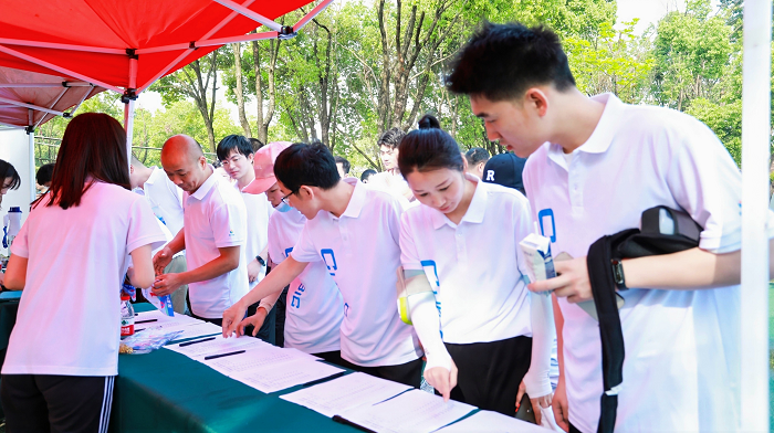 當(dāng)天清晨,參賽者們便身著統(tǒng)一的運(yùn)動(dòng)T恤,在簽到處蓄勢(shì)待發(fā),煥發(fā)出青春的活力與熱情。工作人員清點(diǎn)人數(shù)、引領(lǐng)參賽員工簽到領(lǐng)取物資,確保安全措施落到實(shí)處。