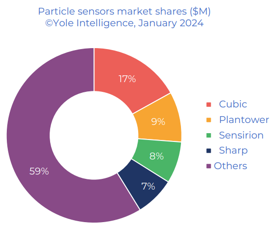 22年前誕生于武漢,但今天的四方光電,早已參與到國際競爭中。目前四方光電的PM傳感器,在民用空氣凈化器、汽車凈化系統(tǒng)、網(wǎng)格化顆粒物監(jiān)測物聯(lián)網(wǎng)等領(lǐng)域?qū)崿F(xiàn)大規(guī)模配套,根據(jù) Yole Intelligence發(fā)布的《Gas and Particle sensors 2024》,公司的激光PM傳感器產(chǎn)品在全球市場占有率排名第一,真正實現(xiàn)了單一品種國際市場的“隱形冠軍”。